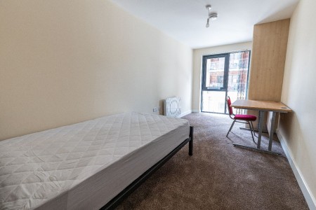 This large bedroom comes furnished with a 4ft Double, Double Wardrobe and Desk & Chair. The bedroom has TV connection and internet point. The bedroom has large floor to ceiling windows giving great views of the city.